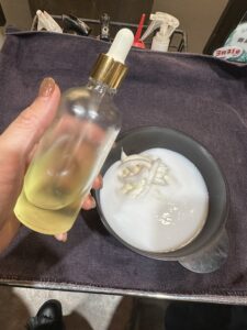 お湯で溶いてる間に、オイルジェルをいれて、