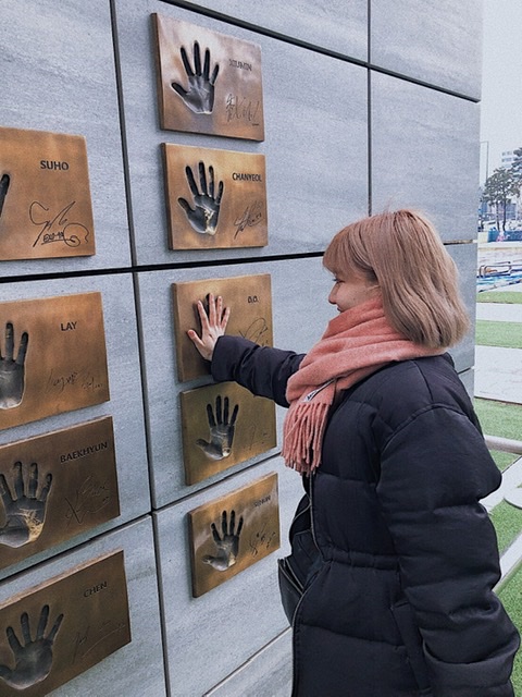 韓国でのおきにいりの写真は私が好きなアイドルの手形に触った写真!幸せそうな顔してます笑