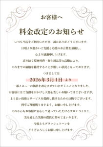 メニュー価格変更のお知らせ